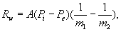 где А - площадь испытуемого защитного покрытия, м2; m1 - среднее значение количества водяного пара, проходящего через образец с защитным покрытием за единицу времени, кг/с; m2 - среднее значение количества водяного пара, проходящего через образец без защитного покрытия за единицу времени, кг/с; Рi - Рe - разность парциальных давлений водяного пара на образце, Па; Ре - парциальное давление водяного пара в воздухе температурой 20 °С и относительной влажностью je = 65 %, Па, вычисленное по формуле (2); Рi - парциальное давление водяного пара в воздухе температурой 20 °С и относительной влажностью ji 100 %, Па, вычисленное по формуле (3). 3.5.3. Удельное сопротивление паропроницаемости (rw), м × Па × кг-1 × с, вычисляют для каждого из 5 образцов на стеклоткани по формуле