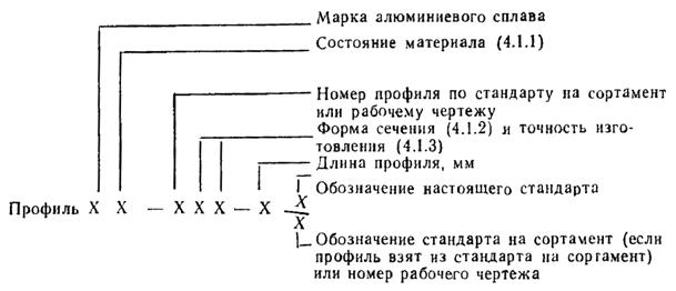 4.2.10 Волнистость полок и стенок не должна быть более 1 мм для профилей нормальной точности, 0,5 мм для профилей повышенной точности и 0,25 мм для профилей особой точности. Шаг волны должен быть не менее 1 м. При значении волнистости до 0,2 мм включ. шаг не лимитируется. 4.2.11 Условное обозначение марки профиля следует принимать по схеме.