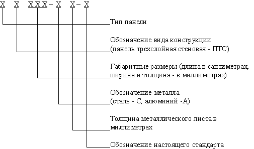 1.3. Панели обозначают марками в соответствии с нижеприведенной схемой. Схема обозначения марок