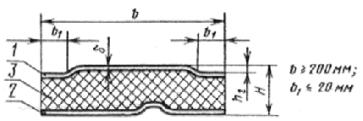 Пример условного обозначения трехслойной стеновой панели типа 1, длиной 718 см, шириной 1016 мм, толщиной 91 мм, с листами из алюминиевого сплава толщиной 0,8 мм: 1ПТС 718.1016.91-А 0,8 - ГОСТ 23486-79 2. ТЕХНИЧЕСКИЕ ТРЕБОВАНИЯ2.1. Панели должны изготовляться в соответствии с требованиями настоящего стандарта по чертежам, утвержденным Госстроем СССР, и технологическим регламентам, утвержденным в установленном порядке. 2.2. Требования к конструкции и прочности панелей при поперечном изгибе 2.2.2. Разрушающая нагрузка при поперечном изгибе образцов, вырезанных из панелей, не должна быть менее величин, указанных в табл. 2. Таблица 2