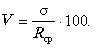 где n - число испытанных образцов; Ri - значение прочности каждого образца в кгс/см2; Rср - среднее арифметическое значение прочности в кгс/см2. 2. Вариационный коэффициент V в процентах определяют по величине среднего квадратичного отклонения по формуле