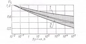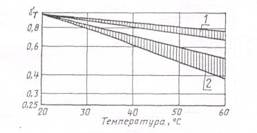 Коэффициенты условий работы по температуре при постоянно действующих повышенных температурах