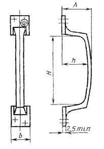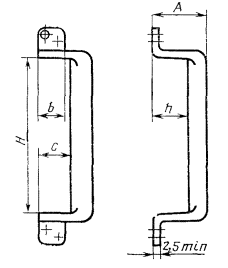 Примечание. Лапки для ручек-скоб типоразмеров PC 80 и PC 100 допускается изготавливать толщиной не менее 2 мм. Пример условного обозначения ручки-скобы типоразмера PC 80, исполнения 1: PC 80-1 ГОСТ 5087-80 Ручка-кнопка типа РК1