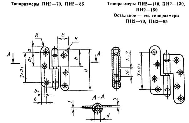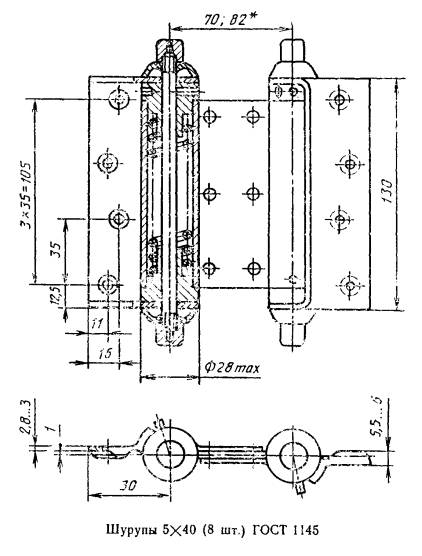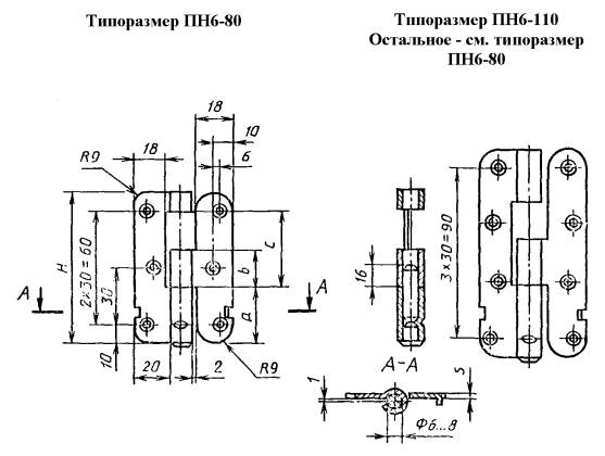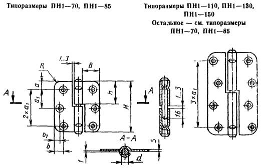 Рисунок Б3 - Петля накладная типа ПН3 Шурупы 5´80 (6 шт.) ГОСТ 1145 Рисунок Б4 - Петля накладная типа ПН4 В миллиметрах