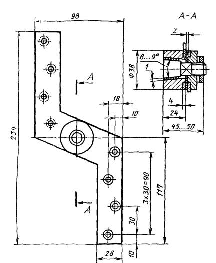 Рисунок Б8 - Петля накладная типа ПН8 * Для дверей с толщиной полотна 52 мм. Рисунок Б9 - Петля накладная типа ПН9 Шурупы 5´35 (8 шт.) ГОСТ 1145. Рисунок Б10 - Петля накладная типа ПН10 В миллиметрах