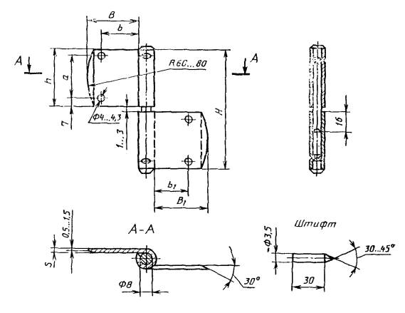 Рисунок Б1 - Петля накладная типа ПН1 В миллиметрах