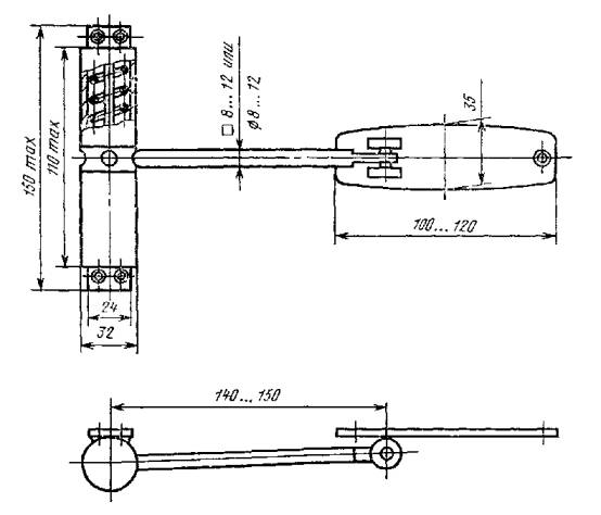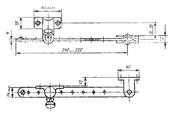 * Диапазон регулирования - 40 мм. (Измененная редакция. Изм. № 2) Шурупы 1-5 ´ 40 (4 шт.) и 2-5 ´ 25 (2 шт.) по ГОСТ 1145-80 или ГОСТ 1146-80. (Измененная редакция. Изм. № 2) Условное обозначение: ЗД1 ГОСТ 5091-78 Черт. 2 исключен (Измененная редакция. Изм. № 2). Закрыватель дверной типа ЗД3