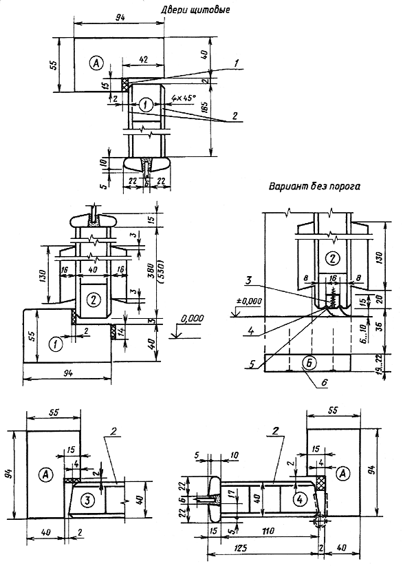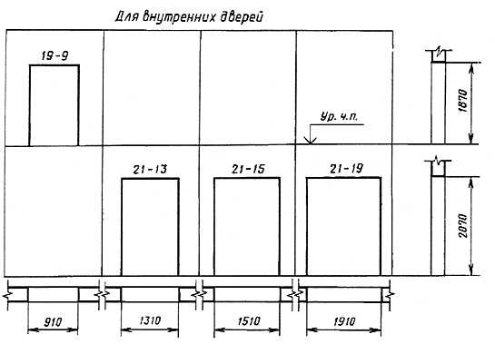 Черт. 4 Примечание. Сечения полотен - на черт. 9 - 11. Размеры коробок внутренних дверей мм