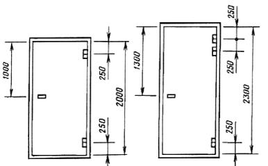 Замок по ГОСТ 5089; для наружных дверей 3В1А, для внутренних 3В4. Петли по ГОСТ 5088; для наружных дверей ПН1-110, для внутренних - ПН4, для качающихся ПН9-130-1 Приемы установки защитных ограждений для наружных дверей