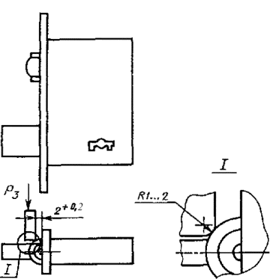 Черт. 4 Черт. 5 Измененная редакция, (Изм. № 1). 4.5.2. Величины эксплуатационных усилий должны соответствовать: сила P2, прикладываемая к защелке для ввода в корпус, - 3-20 Н (0,3-2 кгс); сила Р3, прикладываемая к регулируемому фиксатору для ввода в корпус, - 25-45 Н (2,5-4,5 кгс); максимальный момент силы М4, прикладываемый к ключу (постоянному ключу) для вывода и ввода засова в корпус, - не более 0,6 Н×м (0,06 кгс×м); момент силы М5, прикладываемый к фалевой ручке для ввода защелки в корпус, - 0,6-2 Н×м (0,06-0,2 кгс×м). Измененная редакция, (Изм. № 1). 5. ОБРАБОТКА РЕЗУЛЬТАТОВ5.1. Результаты испытаний должны быть оформлены протоколом. Образец протокола приведен в рекомендуемом приложении. 5.2. Силу и момент силы по п. 4.5.1 определяют как среднее арифметическое значение результатов пяти измерений. ПРИЛОЖЕНИЕ