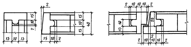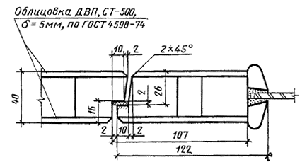 Сечение Б2 Сечение Б4 1 - уплотняющая прокладка по ГОСТ 10174; 2 - соединение на клеях повышенной водостойкости; 3 - шуруп 1-3´30 по ГОСТ 1144, шаг 200 мм; 4 - прокладка из резины толщиной 2 мм; 5 - рейка (12´20) мм; 6 - монтажная доска Черт. 9 Сечение В1 Сечение В3