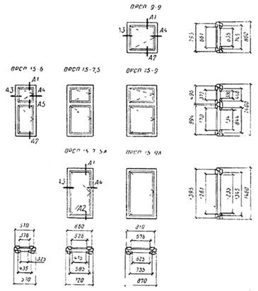 Примеры условных обозначений (марок) Окно правое серии РСП для проема высотой 15 и шириной 9 дм: ОРСП15—9 ГОСТ 24699-81 То же, левое: ОРСП15— 9Л ГОСТ 24699-81 Дверь балконная правая серии РСП для проема высотой 22 и шириной 9 дм: БРСП22—9 ГОСТ 24699-81 Окно серии РСП для проема высотой 18 и шириной 15 дм, с несимметричным рисунком (вариант А): ОРСП18—15А ГОСТ 24699-81 То же. в негативном (зеркальном) исполнении: ОРСП18—15АН ГОСТ 24699-81 Габаритные размеры окон и балконных дверей жилых зданий Окна