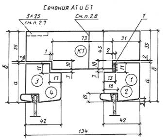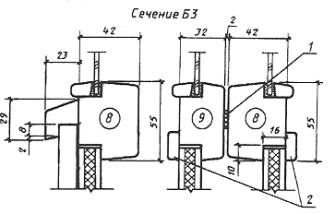 1- уплотняющая прокладка; 2 - раскладки Черт.21