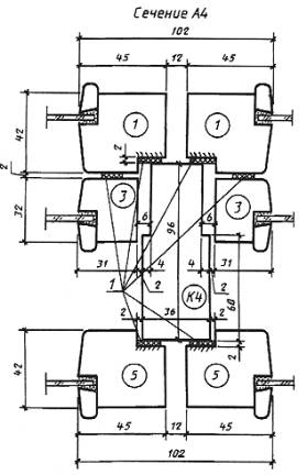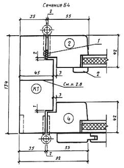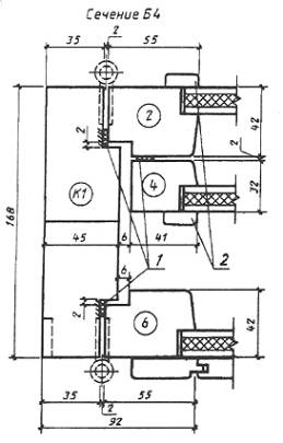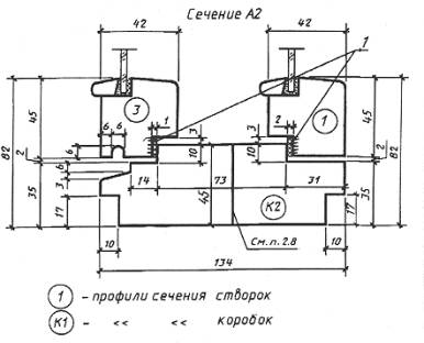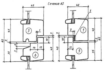Сечения по притворам окон и балконных дверей с двойным остеклением