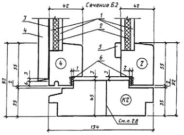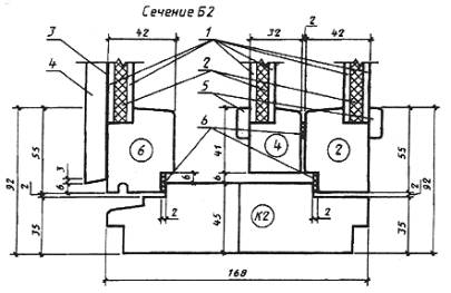 1 - твердая ДВП марки Т группы А толщиной 3,2-4 мм по ГОСТ 4598-86; 2 - мягкая ДВП толщиной 8 мм по ГОСТ 4598-86; 3 - пергамин по ГОСТ 2697-83;; 4 - обшивка типа 2 по ГОСТ 8242-75; 5 - раскладки; 6 уплотняющие прокладки по ГОСТ 10174-72. Черт.20
