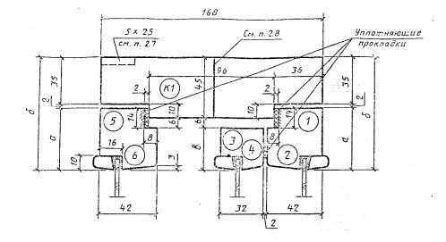 1 - уплотняющая прокладка; 2 - раскладка Черт.11