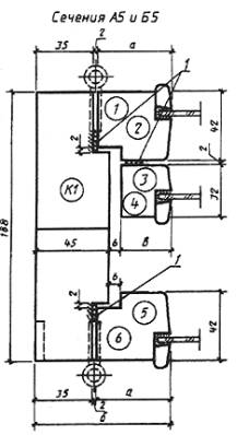 1 - твердая ДВП марки Т группы А толщиной 3,2-4 мм по ГОСТ 4598; 2 - мягкая ДВП толщиной 8 мм по ГОСТ 4598; 3 -пергамин по ГОСТ 2697; 4 - обшивка типа 2 по ГОСТ 8242; 5 - раскладка; 6 уплотняющие прокладки по ГОСТ 10174 Черт.9