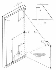 Постановлением Государственного комитета СССР по делам строительства от 26 марта 1986 г. № 34 срок введения установлен с 01.01.87 Настоящий стандарт распространяется на деревянные распашные двери жилых, общественных и производственных зданий и сооружений различных отраслей народного хозяйства и устанавливает метод, предназначенный для выполнения контрольных и приемочных испытаний на сопротивление дверей ударной нагрузке в лабораторных условиях. Метод заключается в нанесении ударов в полотно запертой двери неупругим телом (грузом), обладающим запасом энергии, эквивалентной эксплуатационному воздействию, и падающим под действием силы тяжести в направлении открывания двери. 1. АППАРАТУРА И ИНСТРУМЕНТ1.2. Груз, представляющий собой кожаный мешок, заполненный сухим песком в полном объеме. Масса мешка с песком (5,0±0,1) кг, диаметр - (200±5) мм. 1.3. Металлическая линейка длиной 1000 мм по ГОСТ 427-75 или специальное устройство с погрешностью измерения не более ±0,1 мм для установления высоты падения мешка. 1.4. Металлическая поверочная линейка длиной 400 мм по ГОСТ 8026-75 и набор щупов по ГОСТ 882-75 или специальное устройство с погрешностью измерения не более ±0,1 мм для проверки местных отклонений формы. 1.5. Поверочный угольник по ГОСТ 3749-77. 2. ПОДГОТОВКА И ПРОВЕДЕНИЕ ИСПЫТАНИЯ2.1. Образцы дверей для испытания должны быть изготовлены в соответствии с нормативно-технической документацией (НТД) на эти изделия. 2.2. Для проведения испытания образец закрепляют на стенде. Дверное полотно должно быть соединено с коробкой петлями. 2.3. До начала испытания проверяют размеры и форму дверного полотна, измеряют в соответствии с СТ СЭВ 4182-83 размеры и отклонения от прямоугольности и в соответствии с СТ СЭВ 4181-83 отклонения от плоскостности. 2.4. Дверь запирают. При испытании внутренних межкомнатных дверей подвижность дверного полотна допускается ограничивать на расстоянии 1000 мм от его нижней кромки с помощью ограничителя (конструктивного элемента стенда), не повреждающего полотно. 2.5. На поверхности полотна, обращенной к притвору дверной коробки, намечают зону для нанесения ударов радиусом 100 мм из центра с координатами относительно вершины нижнего свободного угла полотна: по вертикали 250 мм, по горизонтали 1/3 ширины полотна, но не более 300 мм (см. чертеж). 2.6. Высоту h, мм, подъема груза, необходимую для создания нормативного запаса энергии (см. таблицу), определяют по формуле