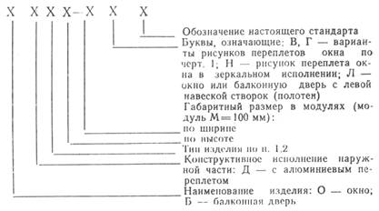Примеры условных обозначений Деревоалюминиевое окно типа С с габаритными размерами по высоте 18М и ширине 9М, с вариантом рисунка окна В: ОДС18-9В ГОСТ 27936-88 То же, типа С с габаритными размерами по высоте 18М и ширине 15М, с вариантом рисунка окна В и рисунком переплета в зеркальном исполнении: ОДС18-15ВН ГОСТ 27936-88 Балконная дверь типа Р с габаритными размерами по высоте 28М и ширине 9М: БДР28-9 ГОСТ 27936-88 Окно типа Р с габаритными размерами по высоте 18М и ширине 15М, с вариантом рисунка Г: ОДР18-15Г ГОСТ 27936-88 Балконная двери типа Р с габаритными размерами по высоте 28М и ширине 12М, с левой навеской полотен: БДР28-12Л ГОСТ 27936-88 Габаритные размеры деревоалюминиевых окон и балконных дверей
