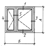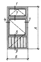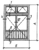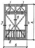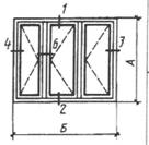 Примечание. В табл.1 и 2 размеры на схемах деревоалюминиевых окон и балконных дверей даны в свету по наружным сторонам неокрашенных деревянных коробок.
