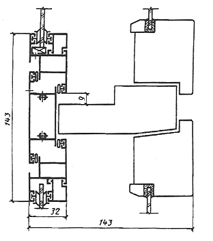 Черт.14 Таблица 2 Конструкция и основные размеры окон и балконных дверей с наружным алюминиевым переплетом Тип С