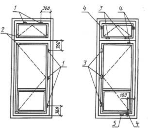 1 – завертка врезная типа ЗР1; 2 – петля для спаривания; 3 петля; 4 – соединитель створок; 5 – компенсатор Черт.20