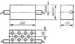 Камень (кирпич) пустотелый Черт. 2 2. АППАРАТУРА И МАТЕРИАЛЫ2.1. Ультразвуковые измерения проводят при помощи приборов, предназначенных для измерения времени распространения ультразвука в кирпиче, камнях и бетоне, аттестованных по ГОСТ 8.383-86. 2.2. Предел допускаемой абсолютной погрешности измерения (D) времени распространения ультразвука на стандартных образцах, входящих в комплект прибора, не должен превышать значения