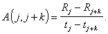 с номером 3. Для вычисления коэффициента А предварительно вычисляют m значений тангенса А (j, j + k) угла наклона прямых, соединяющих точки Rj, tj, с точками Rj+k, tj+k по формуле