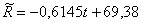 результаты испытаний в порядке строгого возрастания t : t1 = 70,0, R1 = 24,62; ...; t83 = 80,7, R83 =
