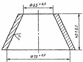 1 - цилиндрический металлический стержень; 2 - обойма станины; 3 - стопорное устройство; 4 - указатель; 5 - шкала; 6 - пестик; 7 - игла Массу перемещающейся части прибора сохраняют взаимной перестановкой пестика и иглы. Отдельные детали перемещающейся части прибора подбирают таким образом, чтобы их общая масса находилась в пределах (300±2) г. Размеры иглы и пестика должны соответствовать указанным на черт. 2 и 3. 1.1.2. Кольцо к прибору Вика и пластинка, на которую устанавливают кольцо, должны быть изготовлены из нержавеющей стали, пластмассы или другого не впитывающего воду материала. Форма и размеры кольца должны соответствовать указанным на черт. 4. 1.1.3. Мешалка для приготовления цементного теста должна отвечать требованиям соответствующих технических условий. 1.1.4. При отсутствии в лаборатории механизированной мешалки для приготовления цементного теста применяют чашу сферической формы (черт. 5), изготовленную из нержавеющей стали. Рабочая часть иглы