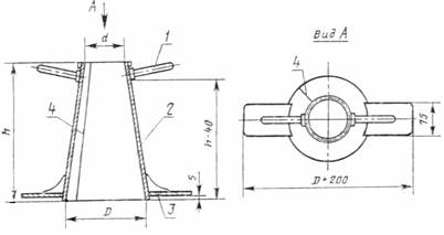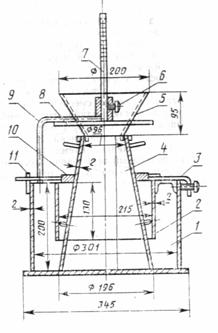 Настоящий стандарт распространяется на бетонные смеси, приготовленные на минеральных вяжущих, плотных и пористых заполнителях, и устанавливает методы определения их удобоукладываемости по показателям подвижности и жесткости. 1. ОБЩИЕ ТРЕБОВАНИЯ1.1. Общие требования к методу определения удобоукладываемости бетонной смеси - по ГОСТ 10181.0-81. 2. АППАРАТУРА2.1. Для проведения испытаний применяют: конус (черт. 1); прибор для определения жесткости (черт. 2); лабораторную виброплощадку; стальные линейки по ГОСТ 427-75; кельму типа КБ по ГОСТ 9533-81; прямой металлический гладкий стержень диаметром 16 мм, длиной 600 мм, с округленными концами; загрузочную воронку; гладкий металлический лист размерами не менее 700×700 мм. 2.2. Конус изготовляют из листовой стали. Внутренняя сторона конуса должна иметь гладкую поверхность, степень шероховатости которой не должна быть более Rz 40 мкм по ГОСТ 2789-73. Конус для определения подвижности бетонной смеси 1 - ручка; 2 - корпус прибора; 3 - упоры; 4 - сварной шов Черт. 1