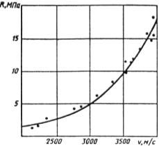 7. Прочность бетона в контролируемых участках конструкций при поверхностном прозвучивании с учетом коэффициента К определяют по градуировочной зависимости "скорость - прочность" в соответствии со скоростью ультразвука (v), м/с, вычисляемой по формуле