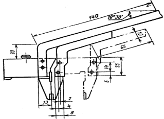 где т1 - масса глины в комках, кг; т - масса аналитической пробы щебня (гравия), кг. Содержание комков глины в смеси фракций вычисляют в соответствии с п. 1.8. 7. ОПРЕДЕЛЕНИЕ СОДЕРЖАНИЯ В ЩЕБНЕ (ГРАВИИ) ЗЕРЕН ПЛАСТИНЧАТОЙ (ЛЕЩАДНОЙ) И ИГЛОВАТОЙ ФОРМЫ7.1. Метод визуальной разборки Содержание в щебне (гравии) зерен пластинчатой (лещадной) и игловатой формы оценивают количеством зерен, толщина или ширина которых менее длины в три и более раза. Настольные гирные или циферблатные весы по ГОСТ 23711 и платформенные по ГОСТ 24104. Передвижной шаблон (черт. 3) или штангенциркуль по ГОСТ 166. Сита из стандартного набора по п. 1.7. 7.1.2. Подготовка к испытанию Из лабораторной пробы от каждой фракции испытываемого щебня (гравия) берут аналитические пробы массой по п. 4.2. Содержание зерен пластинчатой (лещадной) или игловатой формы определяют отдельной для каждой фракции щебня (гравия). При наличии и испытательном щебне (гравии) какой-либо фракции в количестве, меньшем 5 % по массе, содержание зерен пластинчатой (лещадной) и игловатой формы в этой фракции не определяют. 7.1.3. Проведение испытания Аналитическую пробу взвешивают и из нее выбирают зерна, толщина или ширина которых меньше длины в три и более раза. Передвижной шаблон Черт. 3 В сомнительных случаях соотношение размеров зерен определяют при помощи передвижного шаблона или штангенциркуля. При использовании шаблона измеряемое зерно вкладывают наибольшим размером между губками, положение шаблона фиксируют стопорным винтом и измеряют размер зерна, затем зерно пропускают наименьшим размером между усиками шаблона, установленными на расстоянии, в три раза меньшем. Если зерно пройдет между усиками, то его относят к зернам пластинчатой или игловатой формы. Зерна пластинчатой и игловатой формы взвешивают. 7.1.4. Обработка результатов Содержание в каждой фракции щебня (гравия) зерен пластинчатой (лещадной) и игловатой формы (Пгл) в процентах, вычисляют по формуле