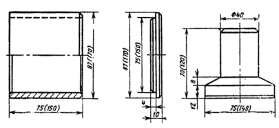 где m1-масса зерен слабых пород, г; m-общая масса пробы, г. При испытании щебня (гравия), состоящего из смеси фракций, содержание зерен слабых пород вычисляют в соответствии с п. 1.8. 9.2. Определение содержания слабых разностей в горной породе и дробимости щебня, полученного из этой породы Содержание слабых разностей в горной породе определяют путем визуальной оценки керна, извлеченного из разведочной скважины, а дробимость при сжатии (раздавливании) определяют испытанием щебня, полученного при дроблении этого керна. Металлическая рулетка по ГОСТ 7502. Лабораторная дробилка. Гидравлический пресс с усилием до 100 или 500 кН по ГОСТ 28840. Cтальные цилиндры с внутренним диаметром 150 мм (черт. 4). Настольные гирные или циферблатные весы по ГОСТ 23711 или лабораторные рычажные по ГОСТ 24104. Сита из стандартного набора по п. 1.7. Сито с круглыми отверстиями диаметром 2,5 мм. Сушильный шкаф по ОСТ 16.0.801.397. Металлическая щетка. 9.2.2. Подготовка к испытанию В качестве пробы берут керн испытываемой породы. С поверхности керна, находящегося в керновых ящиках, перед началом испытания удаляют металлической щеткой пыль и грязь. 9.2.3. Проведение испытания Визуально с использованием методов, указанных в п. 9.1.3, определяют отрезки керна, представленные слабыми разностями породы, и металлической рулеткой измеряют длину каждого из них с погрешностью до 0,01м. Объем отрезков керна, полученных в пределах одного интервала, должен обеспечить получение щебня фракции св. 10 до 20 мм в количестве, достаточном для определения его дробимости при сжатии в цилиндре диаметром 150 мм. Керн каждого интервала в отдельности дробят в лабораторной дробилке до крупности не более 20 мм. Продукт дробления рассеивают на ситах с круглыми отверстиями размером 10 и 20 мм для выделения щебня фракции св. 10 до 20 мм. Пробы щебня перед испытанием высушивают до постоянной массы. Дробимость при сжатии в цилиндре определяют в соответствии с п. 8. Содержание слабых разностей в породе (Xсл) в процентах вычисляют по формуле
