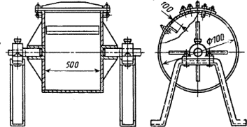 где Дрi-дробимость породы данного интервала керна, %; li- длина данного интервала керна, м; Li- общая длина керна, м. За результат испытания принимают среднее арифметическое значение двух параллельных определений. Перевод дробимости щебня в марку по прочности производят в соответствии с ГОСТ 8267. 10. ОПРЕДЕЛЕНИЕ ИСТИРАЕМОСТИ ЩЕБНЯ (ГРАВИЯ) В ПОЛОЧНОМ БАРАБАНЕИстираемость (износ) щебня (гравия) определяют по потере массы зерен при испытании пробы в полочном барабане с шарами. Полочный барабан (черт. 6) диаметром 700 мм, длиной 500 мм, снабженный на внутренней поверхности полкой шириной 100 мм. Стальные или чугунные шары диаметром 48 мм массой (405 ± 10) г каждый-12 шт. Настольные гирные или циферблатные весы по ГОСТ 23711. Сушильный шкаф по ОСТ 16.0.801.397. Сито из стандартного набора по п. 1.7. Сито с сеткой № 1,25 по ГОСТ 6613. Полочный барабан Черт. 6 10.2. Подготовка к испытанию Щебень (гравий) фракции от 5 до 10, св. 10 до 20 и св. 20 до 40 мм в сухом состоянии просеивают через два сита с отверстиями размерами, соответствующими наибольшему и наименьшему номинальным размерам зерен данной фракции. Из остатка на сите с отверстиями размером d отбирают две аналитические пробы по (5000±100) а щебня (гравия) с предельной крупностью зерен до 20 мм и две пробы по (10000±100) г щебня (гравия) фракции св. 20 до 40 мм. При испытании щебня (гравия), состоящего из смеси двух или более смежных фракций, аналитические пробы готовят рассеиванием исходного материала на стандартные фракции и каждую фракцию испытывают отдельно. Щебень (гравий) крупнее 40 мм дробят до получения зерен мельче 40 мм и испытанию подвергают щебень (гравий) фракции св. 20 до 40 мм. В случае одинакового петрографического состава фракции щебня (гравия) св. 20 до 40 и св. 0 до 70 мм истираемость последней допускается характеризовать результатами испытания фракции св. 20 до 40 мм. Испытываемый щебень (гравий) не должен содержать пылевидных и глинистых частиц более 1 % по массе. В противном случае щебень (гравий) предварительно промывают и высушивают. (Измененная редакция, Изм. № 1). 10.3. Проведение испытания Приготовленную пробу загружают в полочный барабан вместе с чугунными или стальными шарами, закрепляют крышку барабана и приводят его во вращение со скоростью 30-33 об/мин. Число чугунных или стальных шаров, а также общее число оборотов барабана в процессе одного испытания щебня (гравия) принимают по табл. 4. По окончании испытания содержимое барабана просеивают через сито с отверстиями 5 мм и контрольное сито с сеткой № 1,25. Остатки на ситах соединяют вместе и взвешивают. Таблица 4