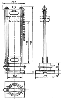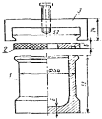 где т-масса пробы щебня (гравия), г; т1-суммарная масса остатков на предохранительном и контрольном ситах, г. В качестве результата испытания принимают среднее арифметическое значение двух параллельных испытаний. При испытании щебня (гравия), состоящего из смеси двух и более смежных фракций, показатель истираемости вычисляют в соответствии с п. 1.8. 11. ОПРЕДЕЛЕНИЕ СОПРОТИВЛЕНИЯ ЩЕБНЯ (ГРАВИЯ) УДАРУ НА КОПРЕ ПМСопротивление щебня (гравия) удару на копре ПМ определяют по степени разрушения зерен при испытании, оцениваемой изменением зернового состава пробы. 11.1. Аппаратура Копер ПМ (черт. 7). Настольные гирные или циферблатные весы по ГОСТ 23711. Сита с круглыми отверстиями диаметрами 3; 5; 25(20) и 40 мм и с сетками № 0,5 и 1 по ГОСТ 6613. 11.2. Подготовка к испытанию Испытанию на копре ПМ подвергают только щебень (гравий) фракции 25(20)-40 мм. Для чего пробу щебня (гравия) массой 3 кг в воздушно-сухом состоянии просеивают через сита с отверстиями 40 и 25(20) мм. Зерна крупнее 40 мм предварительно дробят до получения зерен указанных размеров. Из щебня (гравия), оставшегося на сите с отверстиями 25 (20) мм, готовят две пробы. Испытываемый щебень (гравий) всыпают в специальный мерный сосуд внутренним диаметром 105 мм и внутренней высотой 58 мм. Лишний щебень (гравий) снимают вровень с краями сосуда. Сосуд со щебнем (гравием) взвешивают. Массу каждой аналитической пробы (m) в граммах вычисляют по формуле
