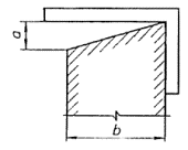 Рисунок Б.1 — Измерение отклонения от прямоугольности по ширине мата, плиты Б.5.4 Выраженный и миллиметрах результат каждого измерения округляют до ближайшего целого числа. По двум измерениям значениям расстояния а и значению ширины b мата вычисляют для каждой короткой грани отклонение от прямоугольности по ширине мата, выраженное в миллиметрах на 100 мм его ширины. По двум измеренным значениям расстояния а и значению ширины плиты b вычисляют для каждой короткой грани отклонение от прямоугольности плиты, выраженное в миллиметрах на 1000 мм ее ширины. Б.5.5 В протоколе испытания указывают максимальное из двух вычисленных значений отклонений от прямоугольности по ширине мата, плиты. Б.6 Измерение отклонения от прямоугольности по толщине плит Б.6.1 Сущность метода заключается в измерении отклонения углов, образуемых короткими боковыми гранями плиты с ее лицевыми гранями, от прямого угла. Б.6.2 Плиту кладут на плоскую горизонтальную твердую поверхность. Ставят поверочный угольник на эту поверхность рядом с одним из углов плиты (рисунок Б.2).