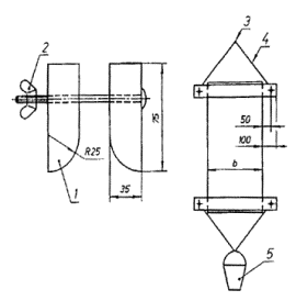 где С — концентрация раствора щелочи, г-экв./л; V2 — объем 0,2 н. раствора щелочи, израсходованный на титрование 1 н. раствора уксусной или соляной кислоты, мл; V1 — объем 0,2 н. раствора щелочи, израсходованный на титрование фильтрата, мл; т — масса пробы, г. 22.5.2 Значение Z принимают как среднее арифметическое трех определений. Разброс в значениях Z при параллельных определениях не должен превышать ± 0,001. 22.5.3 Мк минеральной ваты находят в координатах: модуль кислотности — количество уксусной или соляной кислоты, израсходованное на растворение единицы массы пробы минеральной ваты. 22.6 Построение калибровочного графика 22.6.1 Для построения калибровочного графика из одних и тех же компонентов шихты, взятых в различных соотношениях (10 — 15 вариантов) с таким расчетом, чтобы минимальный Мк шихты отличался от максимального не менее чем на 0,4 — 0,5, получают минеральную вату. 22.6.2 Для каждой пробы минеральной ваты рассчитывают Мк на основании результатов химического анализа по ГОСТ 18866, а количество уксусной или соляной кислоты Z определяют в соответствии с 22.4.2 - 22.5.2. На основании полученных данных строят калибровочный график в координатах (Мк; Z — 10-3). Примеры построения калибровочных графиков приведены в приложении Ж. 22.6.3 При частичной или полной замене на предприятии-изготовителе хотя бы одного компонента шихты, строят новый калибровочный график. ПРИЛОЖЕНИЕ А(рекомендуемое) МЕТОДЫ ИЗМЕРЕНИЯ ЛИНЕЙНЫХ РАЗМЕРОВ МИНЕРАЛОВАТНЫХ И СТЕКЛОВАТНЫХ МАТОВ И ПЛИТ В СООТВЕТСТВИИ С ИСО 8144 И ИСО 8145 A.1 Методы распространяются на теплоизоляционные маты и плиты из минеральной и стеклянной ваты на синтетическом связующем. А.2 Общие требования — в соответствии с разделом 3. А.3 Инструменты, приборы Линейка металлическая по ГОСТ 427. Рулетка металлическая с ценой деления 1 мм по ГОСТ 7502. Толщиномер игольчатый (рисунки А1 и А2). Прибор для определения толщины (рисунок А4). А.4 Предел допускаемой погрешности измерения размеров линейкой, рулеткой, толщиномером, прибором для измерения толщины ± 0,5 мм. А.5 Измерение длины и ширины А.5.1 Для измерения размеров до 1 м применяют линейку, св. 1 м — рулетку. Длина измерительного инструмента должна быть не менее длины изделия. А.5.2 Мат, плиту кладут на плоскую горизонтальную твердую поверхность. А.5.3 Длину l мата, плиты измеряют и двух местах: на расстоянии (100 ± 5) мм от каждого края. А.5.4 Ширину h мата, плиты измеряют в трех местах: на расстоянии (100 ± 5) мм от каждого края и посередине изделия. А.5.5 Выраженный в миллиметрах результат каждого измерения длины мата округляют до ближайшею числа, кратного 5; длины плиты — до ближайшего целого числа; ширины мата — до ближайшего числа, кратного 2; ширины плиты — до ближайшего целого числа. Вычисляют среднее арифметическое значение округленных результатов двух измерений длины мата, плиты и округленных результатов трех измерений ширины. А.5.6 В протоколе испытания указывают средние арифметические значения результатов измерения длины и ширины мата, плиты. А.6 Измерение толщины матов А.6.1 Сущность метода заключается в измерении расстояния между плоской твердой поверхностью, на которой лежит мат, и пластиной, свободно лежащей на этой поверхности и создающей заданную удельную нагрузку. А.6.2 Толщину измеряют игольчатым толщиномером (рисунки A1 и А2), состоящим из пластины, которая создает заданную удельную