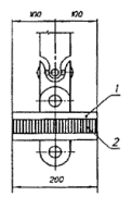 прочности на отрыв слоев ?отр = где Р — разрушающая нагрузка, Н (кгс); l — длина образца, мм (см); b — ширина образца, мм (см). Результат испытания округляют до 0,01 МПа. Е.9 В протоколе испытания указывают значение предела прочности на отрыв слоев. 1 — плоская жесткая пластина; 2 — образец Рисунок Е.1 — Определение предела прочности на отрыв слоев