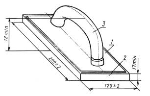 2.4. Партию правил, терок и полутерков принимают, если количество дефектных правил, терок или полутерков в первой выборке меньше или равно приемочному числу, и бракуют без назначения второй выборки, если количество дефектных правил, терок и полутерков больше или равно браковочному числу. Если количество дефектных правил, терок или полутерков в первой выборке больше приемочного числа, но меньше браковочного, производят вторую выборку. Партию правил, терок и полутерок принимают, если количество дефектных правил, терок и полутерков в двух выборках меньше или равно приемочному числу, и бракуют, если количество дефектных изделий в двух выборках больше или равно браковочному числу. 2.5. Потребитель имеет право проводить контрольную проверку качества правил, терок и полутерков, соблюдая при этом приведенный порядок отбора образцов и применяя методы испытаний, установленные настоящим стандартом. 3. Методы контроля (испытаний)3.1. Линейные размеры правил, терок и полутерков должны проверяться при помощи универсальных измерительных средств с абсолютной погрешностью ±1 мм, диаметр сучков и глубина интегрального слоя - с абсолютной погрешностью ±0,1 мм. 3.2. Угловые размеры должны измеряться при помощи угломера по ГОСТ 5378 или шаблонами. 3.3. Допуск плоскостности (п.1.2.5) должен проверяться при помощи щупов на поверочной плите по ГОСТ 10905 или лекальной линейкой по ГОСТ 8026. 3.4. Допуск симметричности (п.1.2.6) должен проверяться при помощи шаблонов. 3.5. Требования пп.1.1.1 (в части образцов-эталонов), 1.2.7 - 1.2.10, 1.2.12, 1.2.13 проверяют визуально методом сравнения с образцом-эталоном. Примечание. Требование п.1.2.10 проверяют до нанесения покрытия. 3.6. Влажность древесины (п.1.2.11) определяют по ГОСТ 16588 или при помощи влагомера. 3.7. Прочность соединения деталей правил, терок и полутерков и прочность конструкций цельнолитых терок и полутерков (пп.1.2.1 - 1.2.4) проверяют с помощью динамометра общего применения 2-го класса точности методом приложения статической нагрузки Рст в течение 2 мин по схемам, приведенным на черт. 9 - 12, или тарированного груза. Падение показаний на динамометре в момент приложения нагрузки не более 10% не является браковочным признаком.
