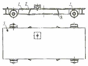 1 - рама; 2 - проушина; 3 - колесо; 4 - плита для электромагнитного крепления формы к виброплощадке; 5 - фиксатор закладных деталей Черт. 1 (Измененная редакция, Изм. № 1).