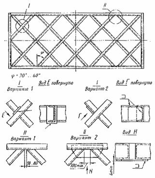 1 - настил (плоский или комбинированный); 2 - каркас; 3 - нижняя обшивка Черт. 4 Раскосный каркас