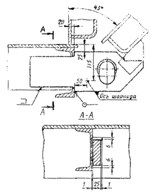 Черт. 11 Тип 6 Проушина с осью для формы с углом открывания борта 45 °