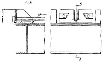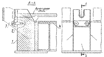 1 - колесо; 2 - прокладка; 3 - подшипник 315 или 316 по ГОСТ 8338-75; 4 - манжета 2.1-90´120-1 или 2.1-95´120-1 по ГОСТ 8752-79; 5 - крышка 32-160 или 32-170 по ГОСТ 18511-73; 6 - болт 3M12´30.58 по ГОСТ 7798-70; 7 - гайка BM72´2.7H.05.05 по ГОСТ 11871-80; 8 - шайба 72.02.019 по ГОСТ 11872-80 Черт. 3 ПРИЛОЖЕНИЕ 4 УПОРЫ, РАСПОЛОЖЕННЫЕ НА ТОРЦАХ ПОДДОНА Упор для однорядного армирования