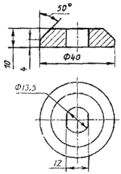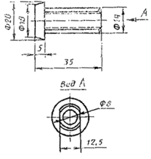 Примечание: В проушинах типов 1 - 4 (черт. 1, 3, 4, 6, 7) вместо фаски 5´45° допускается выполнять притупление по контуру отверстия. Черт. 9 (Введено дополнительно, Изм. № 1). Тип 5 Проушина с осью для форм с углом открывания борта 30°