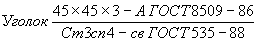 Прокат горячекатаный угловой равнополочный размером 45´45´3 мм, высокой точности прокатки (А) по ГОСТ 8509-86, марки Ст3сп, категории 4 с гарантией свариваемости (св):