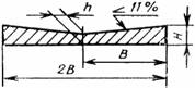 Срок действия с 01.01.85 1. Настоящий стандарт устанавливает сортамент стальных горячекатаных профилей: для косых шайб, овальных, для серпов, для коньков, сегментных, для тормозных шин, применяемых в разных отраслях промышленности. 2. Размеры профилей, предельные отклонения размеров, площадь поперечного сечения, масса 1 м длины должны соответствовать указанным на черт. 1 - 6 и в табл. 1 - 5. 2.1. Профиль для косых шайб