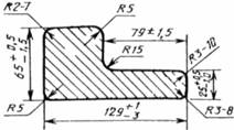 Черт. 5 Площадь поперечного сечения 52,48 см2. Теоретическая масса 1 м профиля 41,2 кг. _________________ * Черт. 2 и 4 исключены (Изм. № 1). 2.6. Профиль сегментный