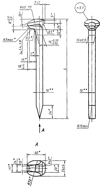 Пример условного обозначения костыля длиной 165 мм: Костыль 165 ГОСТ 5812-82
