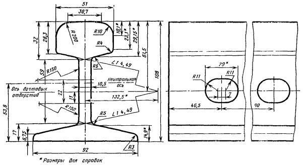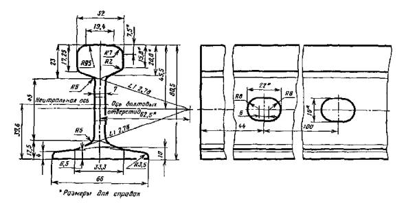 Примечание. При вычислении массы приняты номинальные размеры поперечного сечения рельсов и плотность стали, равная 7830 кг/см3. Справочное